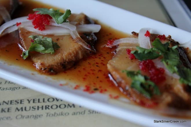 One of the selections I really wanted to try but couldn’t because they didn’t have the raw fish in stock was the Torched Kona Kampachi which is described as, “Kona Kampachi Sashimi stuffed with sweet Maui Onion, Shiso and Tsukudani Yuzu Aioli, rolled and drizzled with Chili Pepper Tosazu”. Sound delicious? I thought so.