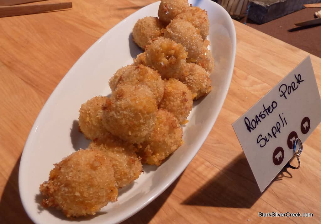 Roasted Pork Suppli. I had one fresh from the fryer and would place this in my hall of fame of comfort foods. Next to grilled cheese sandwiches and runny egg yolks.