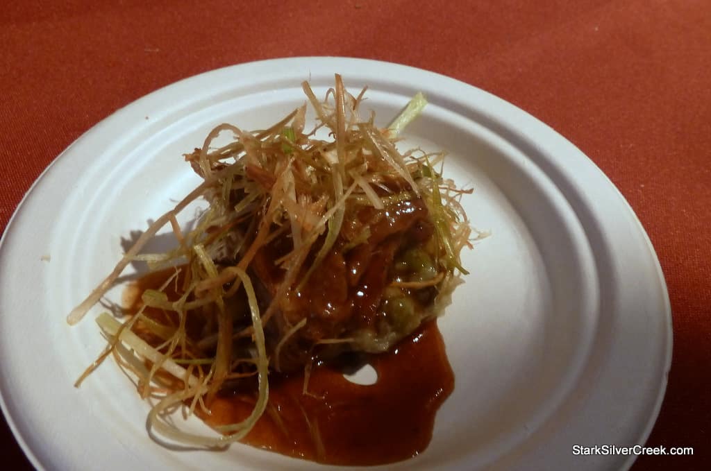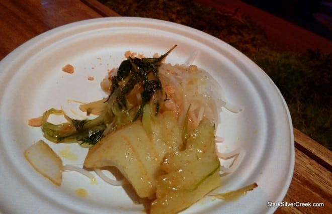 Creation by Chef Liza Shaw, A 16. She was one of the chefs that decided to kick the trend for the evening and prepare something “sans hog”. Chef Charles Phan was another who created a halibut dish. I must admit it was a smart strategy to stand out. After many pork dishes, octopus and halibut were welcomed breaks.