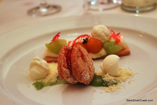 For each course Chef Josiah Slone would come out and give a overview of his thoughts when he created the dish and also the wine that is paired with it. At Sent Sovi, Josiah selects both the menu and the wines. Chef Josiah commented on the “crap year for tomatoes” and the challenge it was to find tomatoes that were suitable for his famous gazpacho.