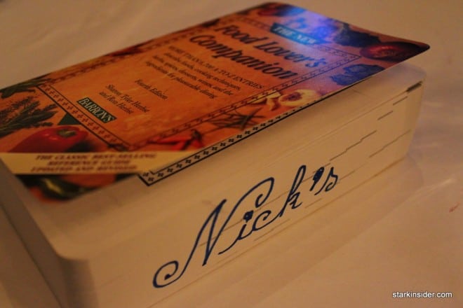 The bill came in a fun ingredients book, “The Food Lover’s Companion”. I always thought the best food lover’s companion was an excellent chef, who knew it came in the form of a book.