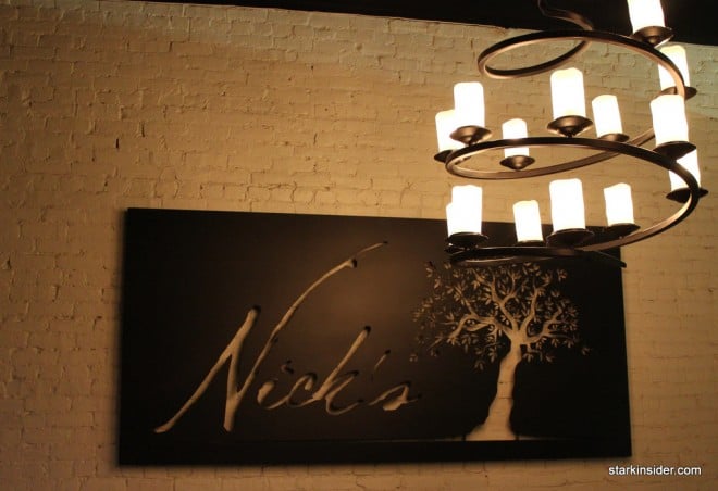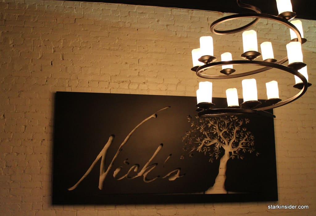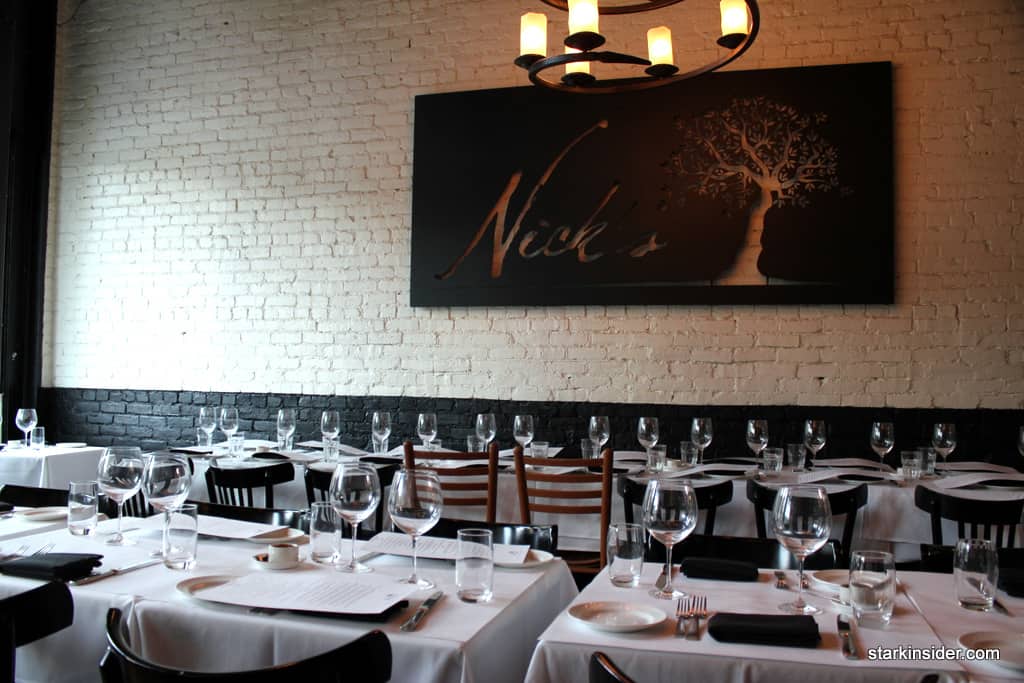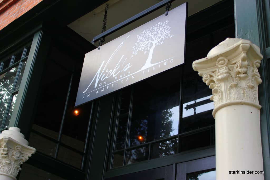 We were in the mood for superlative dishes. Fine dining that exceeded comfort food that wasn’t avant garde, served in a charming, intimate setting. The American bistro motif with definite European influences of Nick’s on Main immediately welcomed us in. The curved black bistro chairs pushed against crisp white table cloths and the painted exposed brick walls, all dimly lit by the candle chandelier that hung overhead.