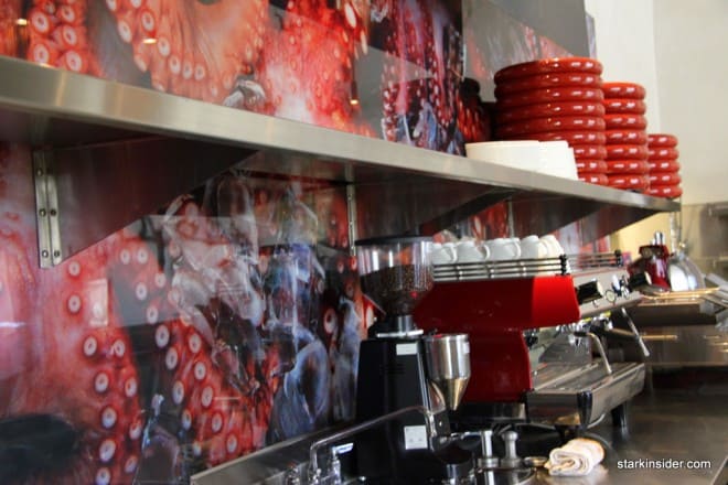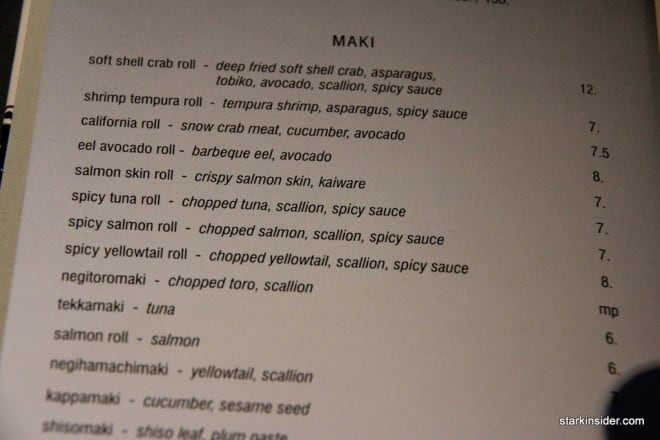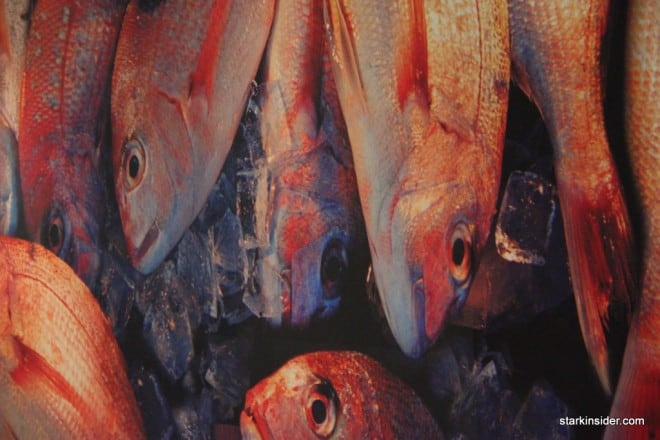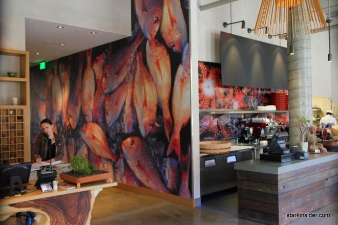 I followed the hostess past the warm bright wall of fish. There was no ambiguity surrounding the message: the restaurant selects its patrons. If you love fish, the wall is a visual oasis. Having fantasized many times about paddling out in a panga boat in the Sea of Cortez, catching Hamachi and eating it up right there, this wall had me salivating.