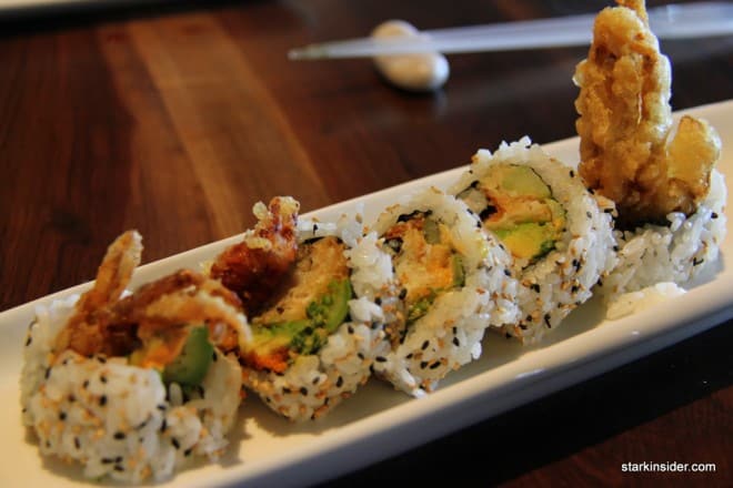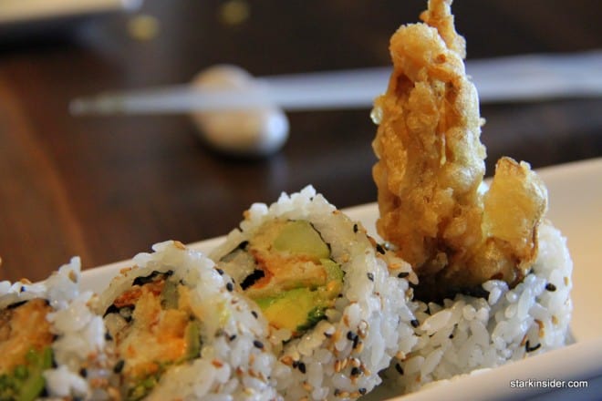When executed to perfection, all of the soft shell crab exoskeleton should be crunchy and this texture should be highlighted by a thin, golden aura of tempura contrasted with the creaminess of avocado and a sauce which highlights the delicate flavors of the crab meat.