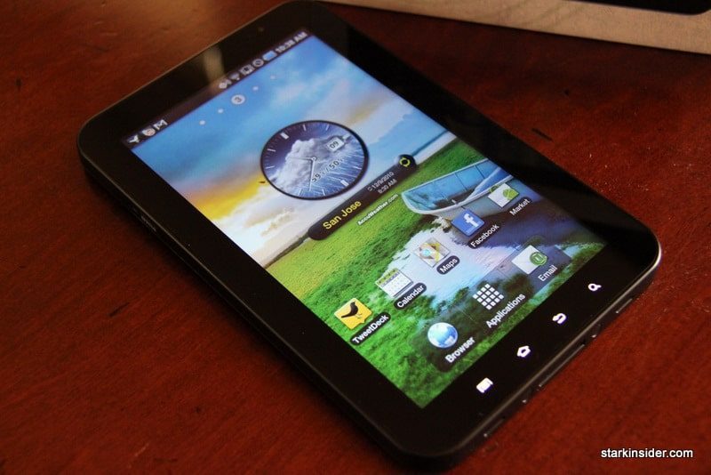 I positively love the Tab’s TFT-LCD display. Although not of the AMOLED variety it is bright, crisp, and very easy to read. No concerns here. It made my Droid appear washed out and dim by comparison. The 1024×600 resolution made for comfortable web browsing.