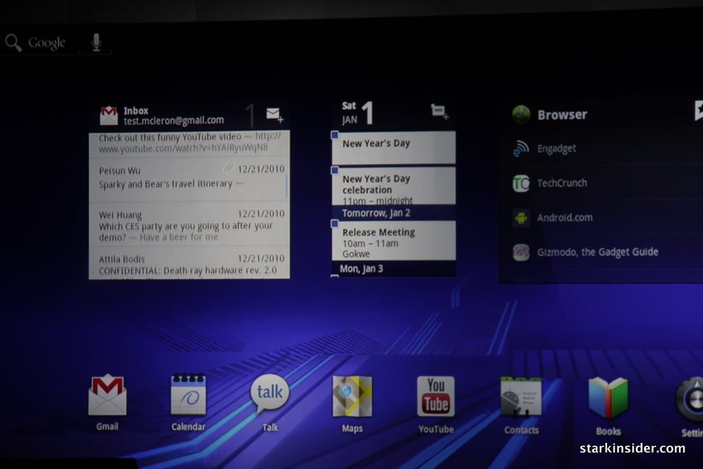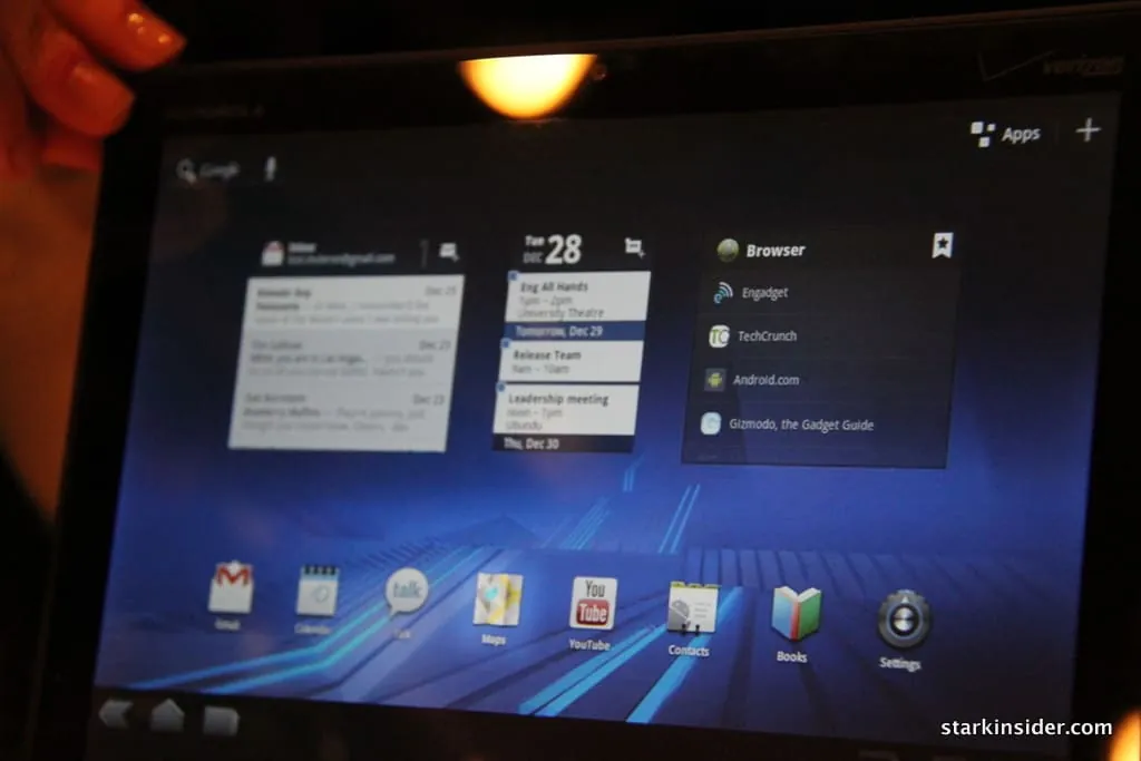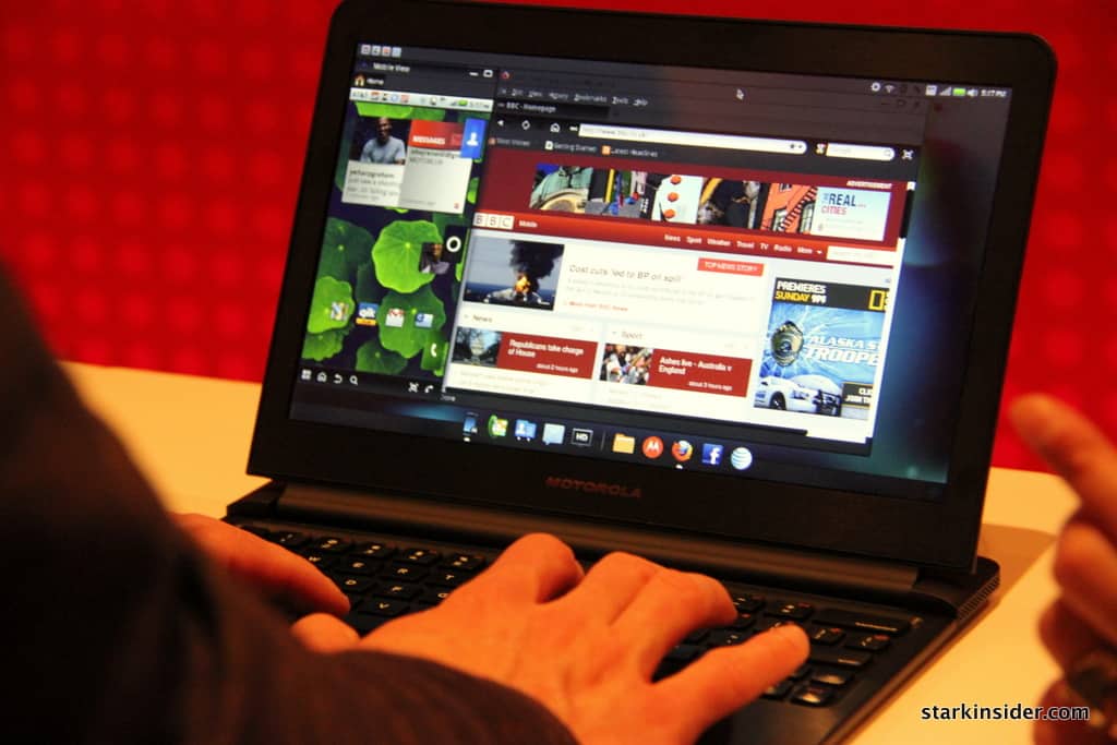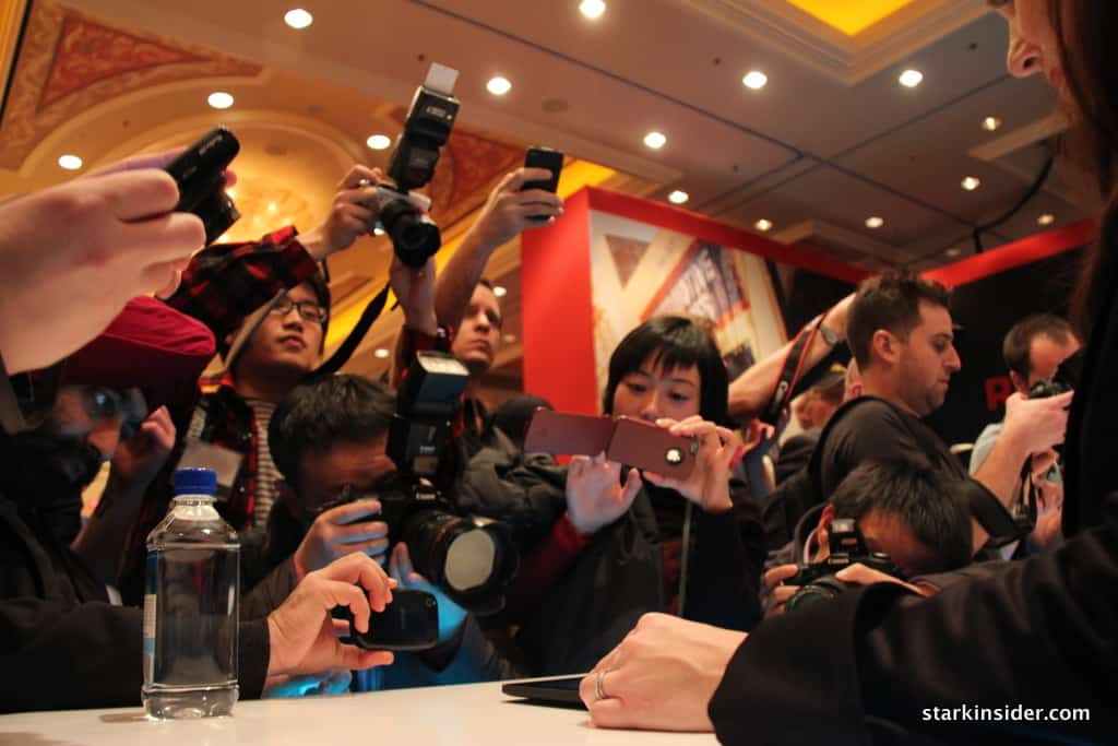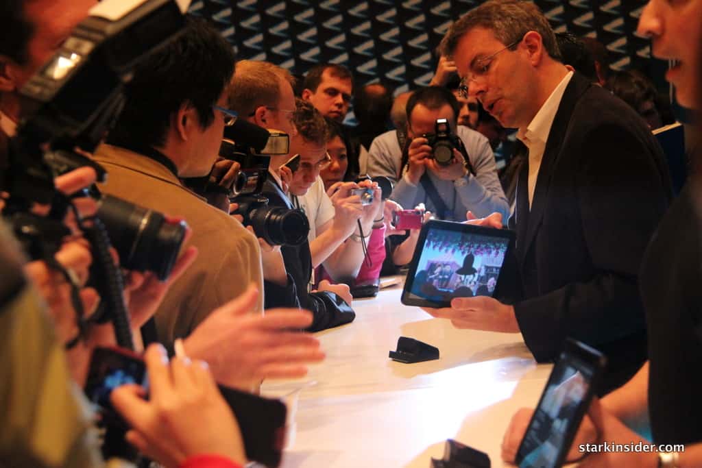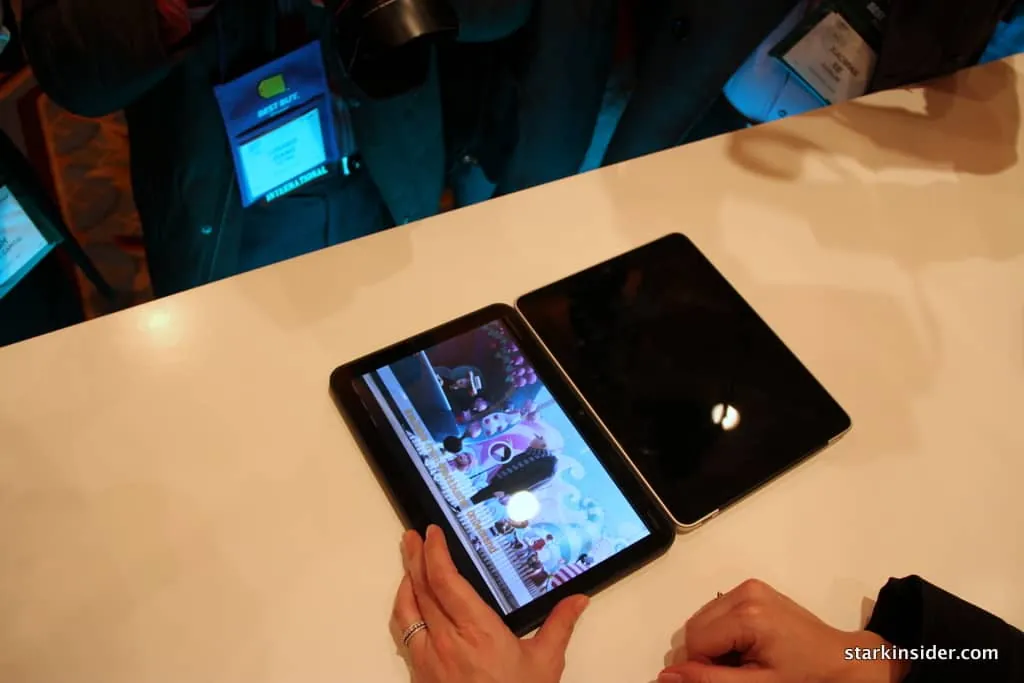 After the press conference (which was jammed to the hilt), a curtain dropped behind us, and we were invited to check out the new Moto offerings. Now, I’ve seen buzz before. We’ve interviewed James Franco, Ed Norton and Danny Boyle, among others here for Stark Insider, but I”ve never witnessed such media euphoria before. All for a small tablet device running Android. Wow. Think tablets aren’t a big story, witness the frenzy that is Xoom. Whether or not that translates into sales success is entirely a different story. Given the surprise success of the Samsung Galaxy Tab and I think the odds are invariably high it will sell well, eventually.