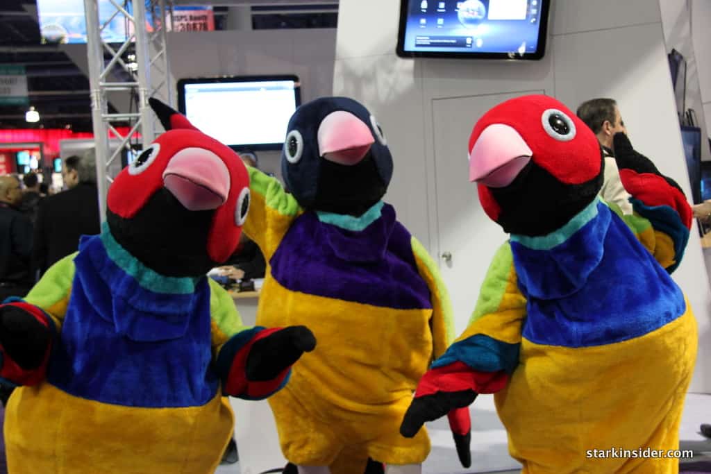 As is always the case when you bring together creative marketing people, new technology and a competitive environment, companies brought out their best tricks, gimmicks and attention-getters. Colorful birds, pulsating music and lights, and decked out sports cars were just some of the scenes that caught our eyes.