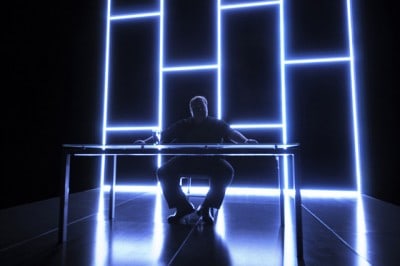 As a work of entertainment, The Agony and the Ecstasy of Steve Jobs also succeeds, if only slightly less than his last show, The Last Cargo Cult, where we feel somewhat less bloody upon departure. Daisey’s delivery ebbs and flows smoothly over two-hours (with no intermission) taking us alternatively from the big-brother halls of Foxconn to the white, glossy and seemingly innocent consumerist tech culture of America. Sans, I might add, a single PowerPoint slide.