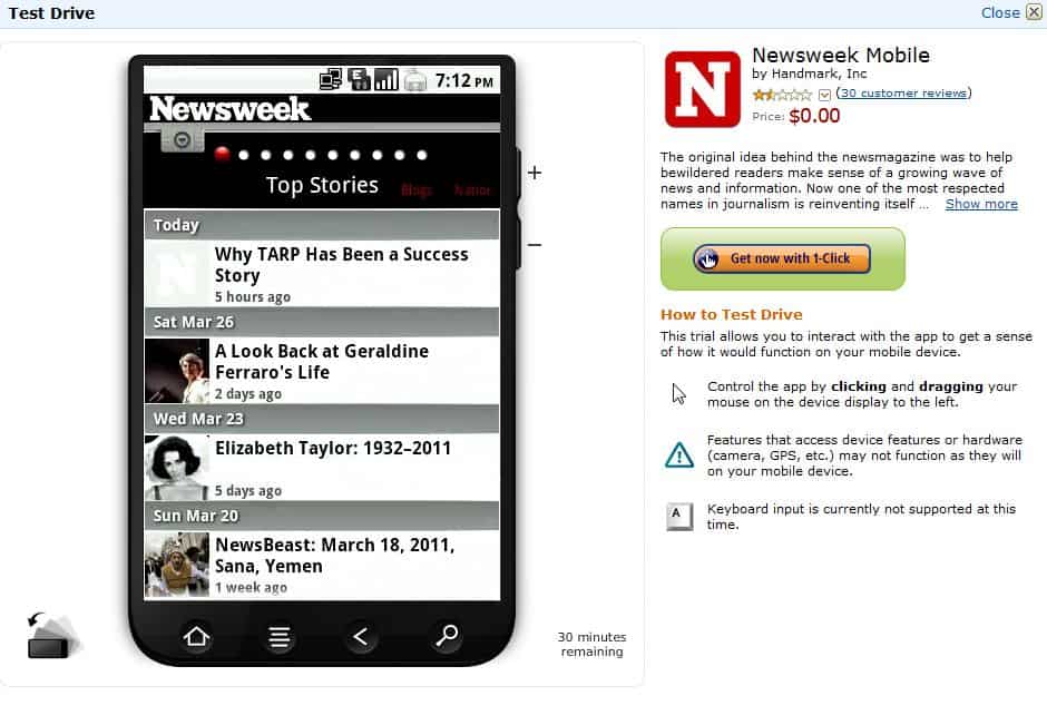 One really unique thing about the Amazon Appstore is its preview capability.
