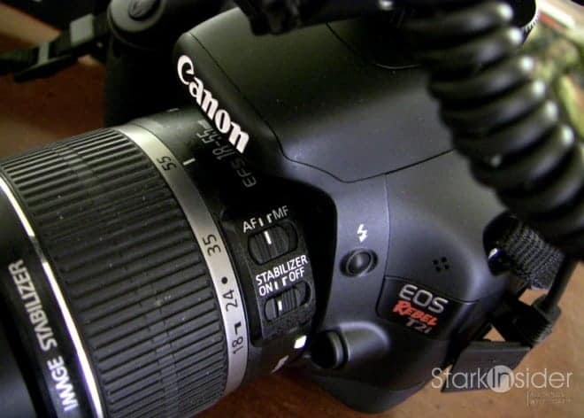 T2i is a trusted friend to Stark Insider as I use it for all our videos now. I cringe when I look back to some of the old shaky Vixia footage–not that our new segments are completely perfect, mind you, but at least I think I see some improvement in quality (and, true, blame that shakiness on the camera operator, not the equipment!). Most of that incremental improvement has to do with the fact that we can now shoot video with a DSLR. How has the experience been? In a word: awesome. You get the flexibility of using any number of lenses. Beautiful depth-of-field is possible if you like that sort of thing. And the 1080p/24fps is icing on the cake.