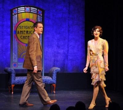 Samantha Bruce, as Joan Fletcher, is the object of the smitten journalist’s desire. A clarion-voiced soprano, her impassioned rendition of the torch standard “The Man I Love”, in a duet with Wells, is by itself worth the price of admission. Her comic timing is impeccable, and her physical attributes suit the many exquisite ’20s flapper gowns she’s asked to wear. Scarlett Kellum’s superb period costume design could not have looked any better!