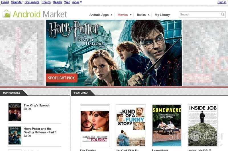 The biggest news so far is Google’s entry into the movie rental business that will put the company into competition with Netflix, Amazon and Apple iTunes most notably. Starting today a new movies tab will be available on the Android Market with titles starting at $1.99 for 24-hour rental. You can access the service via a standard web browser at market.android.com.