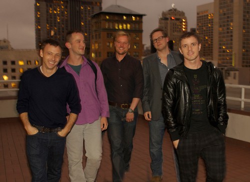 The team behind the brand-new musical Armistead Maupin’s Tales of the City: (from left) choreographer Larry Keigwin, librettist Jeff Whitty, director Jason Moore, and composers John Garden and Jake Shears.