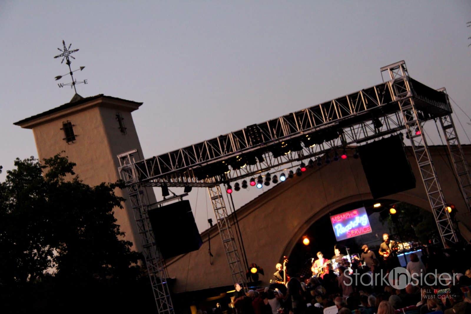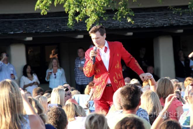 After intermission, the concert kicked into high gear as the sun set over the To Kalon vineyard, and the band burst into a series of crowd-pleasing 50s and 60s covers including “It’s Now or Never” (Elvis Presley), “Great Balls of Fire” (Jerry Lee Lewis), and — my favorite — “Ring of Fire” (Johnny Cash).