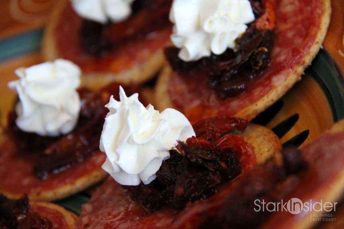 I love this recipe because it is easy to make, looks fabulous, and the saltiness of the salami paired with the sweetness of the sundried tomatoes is delight for the taste buds. The slight tartness of the sundried tomatoes also provides a nice contrast to the flavorful fattiness of the salami.
