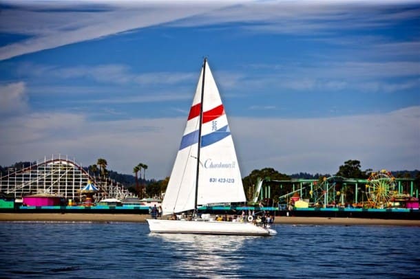 There are several sailing companies that allow you to book a skippered charter for a full day, half day or for a couple of hours, such as Pacific Yachting and Sailing in Santa Cruz (www.pacificsail.com) or Monterey Bay Sailing in Monterey (www.montereysailing.com). The boats will often fit up to 6-8 people and the skipper will let you get hands on and take the helm or try your arm at the ropes. Many are kid friendly as well. Prices start at $300 for a chartered boat with a skipper.