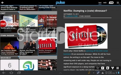 Whereas apps like Zite, Flipboard and AOL Editions look like magazines, Pulse looks more like a stock ticker you might see on CNN. It’s not a bad thing, necessarily, just different. If you don’t like lots of squares, you might get somewhat nauseous, but I think it works perfectly fine. Although, I do wish it would run just a little faster on the Samsung Tab 10. Then again, no app on it seems quite as fast as the iPad.