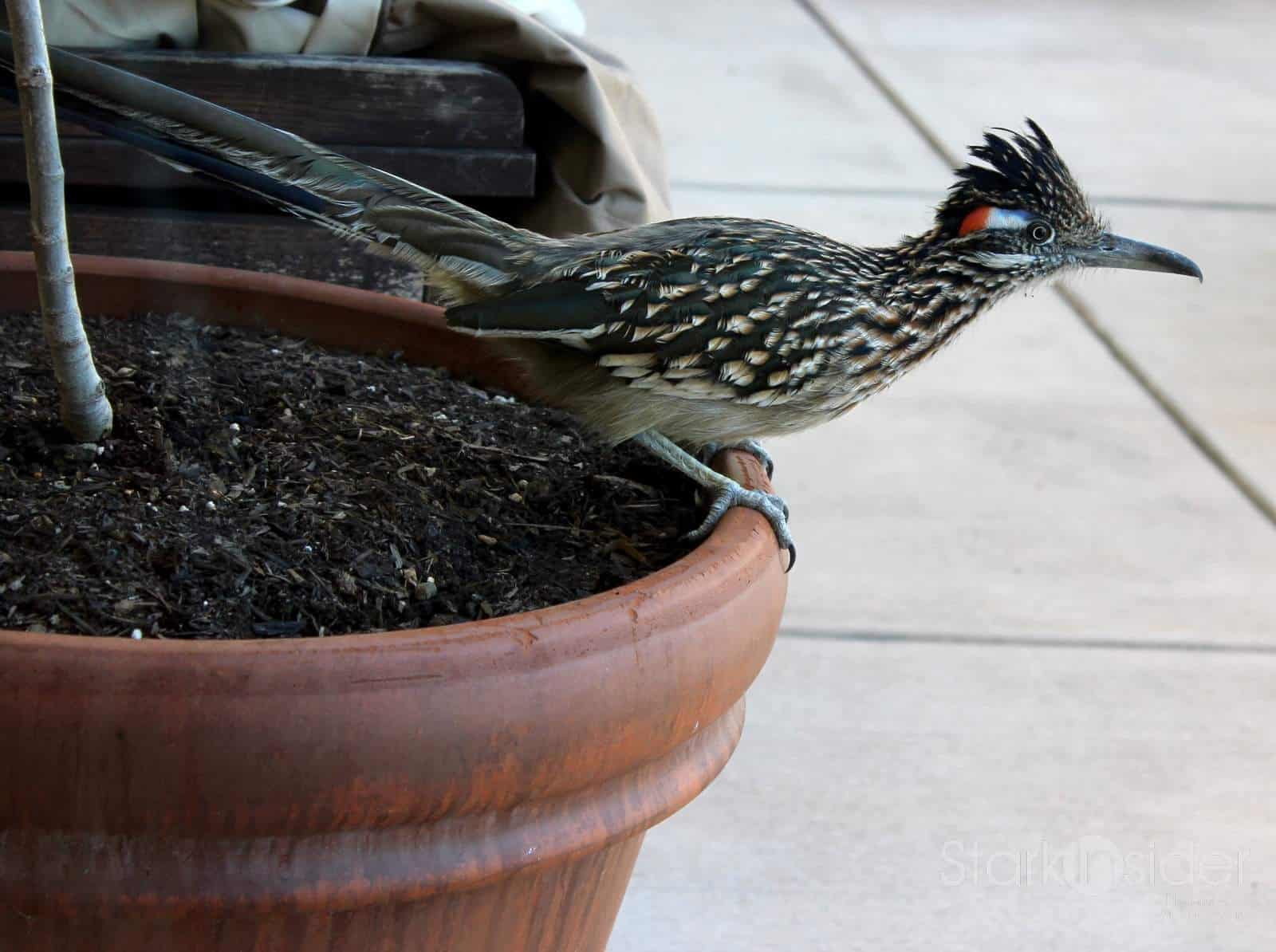 Cameras & Filmmaking Beep! Beep! Photo of the day. BY Clinton Stark — 09.29.2011 Finally! I caught my friend with the T2i. Here he is, a morning visitor who likes checking out the figs. Is he sporting a French flag?