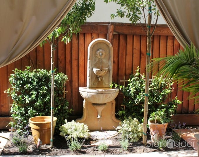 Finally, I placed a 6″x12″ terracotta tile at the base of the fountain so that the fountain can be accessed for cleaning and maintenance.