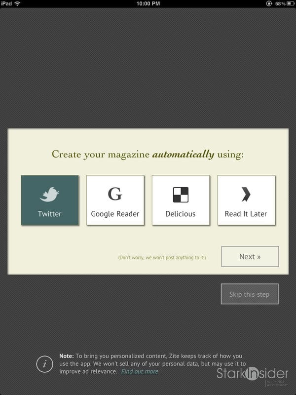 You can create a magazine automatically based on social media. When I tested Zite, I added Twitter, Google Reader, in addition to the recommended topics.