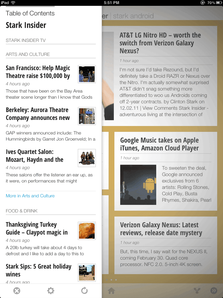 Google Currents Edition of Stark Insider (iPad, Android screen shots)