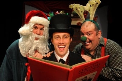 Every Christmas Story Ever Told turned out to be the funniest thing I’ve seen on a Bay Area stage in a very long time. With everything from reingoats to Anthony Weiner’s pull toy, and buzzing Norelco razors speeding dementedly across the tiny thrust stage, Kevin Blackton, Martin Rohas Dietrich and Will Springhorn, Jr. delivered a fast-paced script that had the audience in the aisles wiping their eyes as they listened a passel of amphetamine-crazed munchkins screeching in unison: