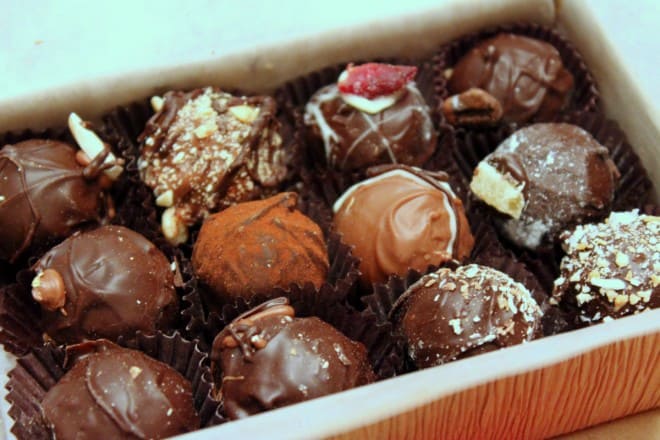 Jim S—, upon entering, handed me a box of truffles which he proclaims are some of the best truffles in Ottawa and perhaps, Canada. Such a statement had me intrigued. Jim is a bona fide foodie having confessed he sometimes takes three days to prepare a dinner and having chided me for my recent, less-than-gourmet, “S’mores No More” Caramilk rice crispy secrets recipe posting.