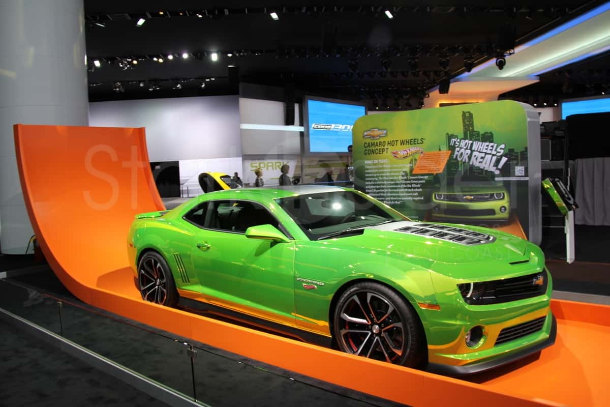Coolest paint job goes to the Hot Wheels Camaro Concept. I couldn’t figure out if it was pure green, or finished with yellow accents. The wonderful lighting here can play tricks too. As you walked around the car, the colors danced. You can’t tell from the photo, but it is a real life Hot Wheels racer!