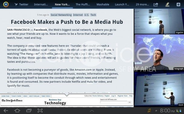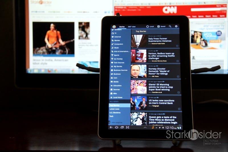 After I’ve made the rounds with News360, I catch up on some of my favorite blogs, RSS feeds. Pulse is king when it comes to that (full review). It’s fast, and easy to scan. A grid like layout makes for quick scanning. Click on a story and you can read almost all sources completely within the app. Like News360 you can sync across devices, and sharing is a breeze.