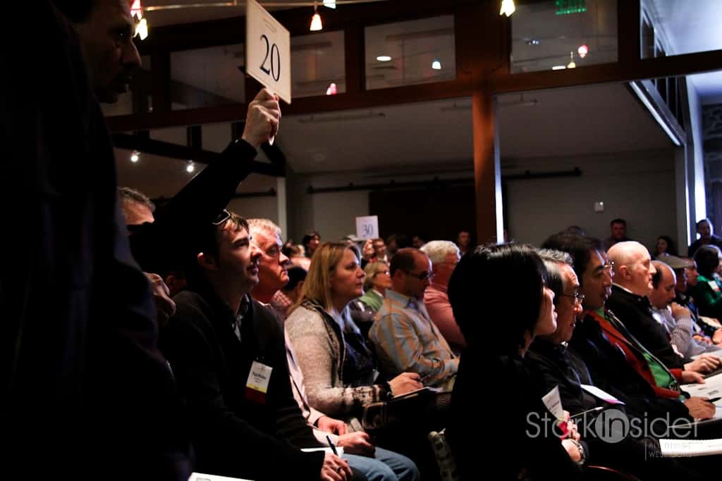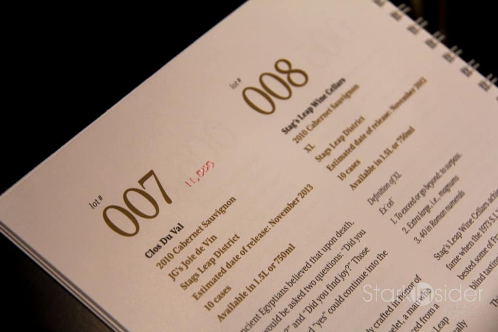 If the annual event is any indication of what’s in store for 2012 then things are definitely looking brighter; though I’d take that with a wee bit of Charlie Brown… there were some well-heeled international buyers intermixed with the distributors and retailers. During the auction I was fortunate enough to sit next to the owner of Bin 104, a fine wine retailer based in Edmonton. He and his partner kept their paddles busy, winning some lots (Conquerel), but losing others. Earlier over lunch, I chatted with some distributors out of Reno. Veterans of the auction, they were optimistic they could score some prized lots and either mark-up and sell through their channels, or do a favor for some valued clients by procuring cases that would otherwise be impossible to source.