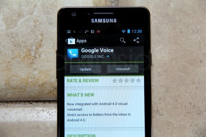 But, if I have an OG Droid how on earth did I test the new Google Voice feature. You can probably tell from the photos that I was able to root a Galaxy S II thanks to a Friend of Stark, and now — Touchwiz be gone! — I’m enjoying the pure Google experience, as long as wi-fi is nearby that is.