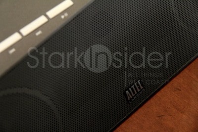 Rich, full sound quality; admirable stereo separation; quality mid-range; classy and unique design; excellent Bluetooth performance; portable with convenient handle cutout in back; remote; apt-x codec produces clean, elegant fidelity.StarkOUT: