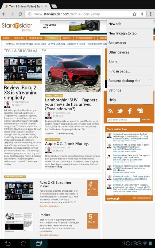 I’ve been accused of being an Android apologist, and I’ll accept that somewhat. iPad still has my tablet attention, but for all else mobile it’s Android 110%. So it surprises me to discover that Google Chrome — a browser that I spend almost every working moment with — pretty much stinks when it comes to the Android version for tablets, phones. And stinks is not a term I throw around loosely.