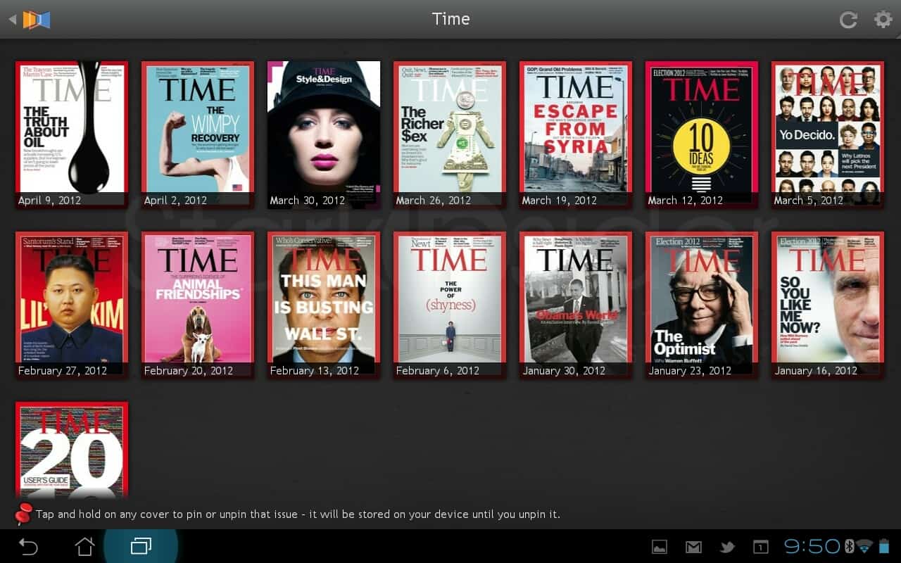 Overall, the interface is slick. I particularly like the cover flow page view. Issues can be “pinned” for storage on your tablet, until you want to free up some space.