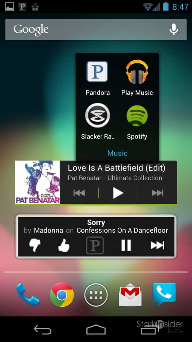 Although my Spotify trial had long since elapsed I was still able to access the new Radio feature. Like Pandora, it’s ad-supported. And on that point the good folks over at Pandora are a little too promo happy. Ads are very aggressive on Pandora. It’s not uncommon to close one pop-up only to have another appear right away, blocking all of the album art and causing continual distractions while driving. Worse still, are the intrusive new videos which not only slow my Nexus slightly, but also sucks down additional data.