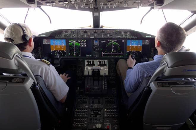 One interesting detail that differentiates Boeing’s design from competitor Airbus is its real-time force feedback. Though both utilize fly-by-wire technology, the Boeing requires more or less force depending on the level of control input required. Think of it as using a brake pedal on a newer model car- even though the pedal is electronically controlled the further you depress the stronger the resistance.