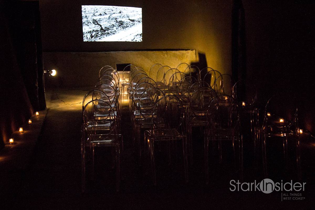 As you can see in these photos, the new cellars look spectacular. I especially like the way the wine caves — three of them at the rear — are integrated into the building. Also, black and white films were projected high onto the walls which gave the place a vintage cultural vibe.