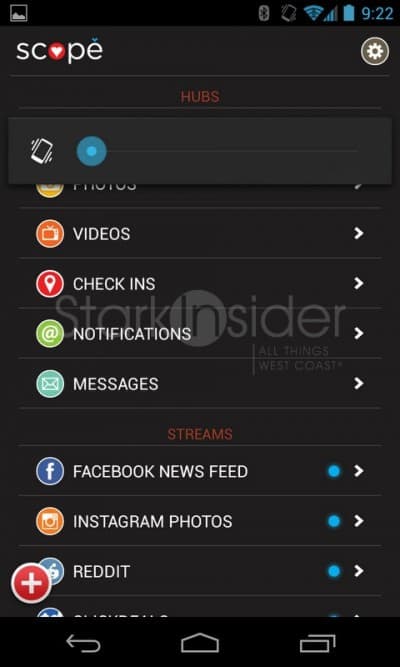 Aspiring to almost be a Flipboard of sorts, the developers have included content-based streams. This allows you to follow various topics. So in addition to your normal social streams you can, for example, pull up a stream of Slickdeals. Or a Reddit feed. It’s almost like an RSS feed with a Twitter makeover. Other streams featured in Scope include Bureau of Trade (?), Levi’s (also ?), and a series of Reddit feeds (Aww, funny, gaming, etc.). I really like this feature, and see huge potential.