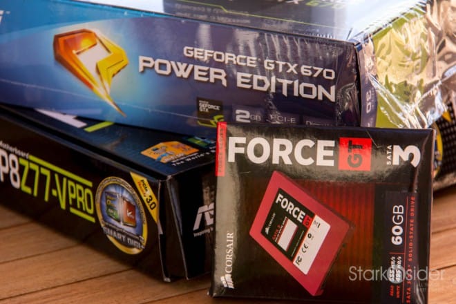 The default links above go to Amazon. Since I’m a Prime customer that’s where I ordered the gear. I’ve included Newegg as well since that’s the most popular enthusiast site – I found prices between the two comparable. Since I’m on Prime it’s nice though to get the free two-day shipping. I originally purchased an MSI GTX 660Ti graphics card, and thanks to Amazon’s easy return policy, swapped it instead for a step-up GTX 670 – I figured the extra memory bandwidth would help some how, some way, and for the extra $50 or so it was worth it.