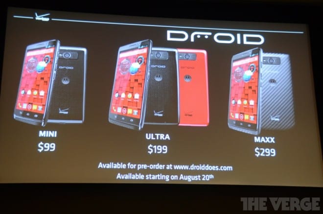 All three new Droids, announced today in New York at a Verizon press event, are only available via the dreaded carrier commitment. Still, there’s a lot to like here, and if you don’t mind locking in for a few years with a device this trio is definitely worth a look.