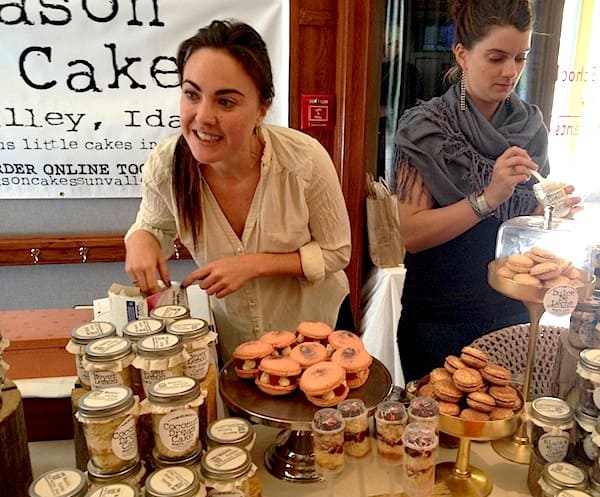 After getting my days worth of vitamins by sampling all the different flavors of Ketchum Kale Chips and Veggie Evolution, created at It Takes a Village Foods, LLC, I was ready to indulge in the “scrumptious little cakes in a jar” a.k.a. Mason Cakes. The business opened last year when fashion designer, Shelly Lindsey, decided to switch from couture to cakes. Using her well-honed design sensibilities she came up with the clever idea of doing cakes in 8 oz. Mason jars. (The fact that her boyfriend is one of the Mason jar family descendants might have had something to do with it!) My fave is the pretty in Red Velvet flavor or wait, maybe it’s the Meyer Lemon-Greek Yogurt cake, although I also was a fan of the ‘German Chocolate cake and the……