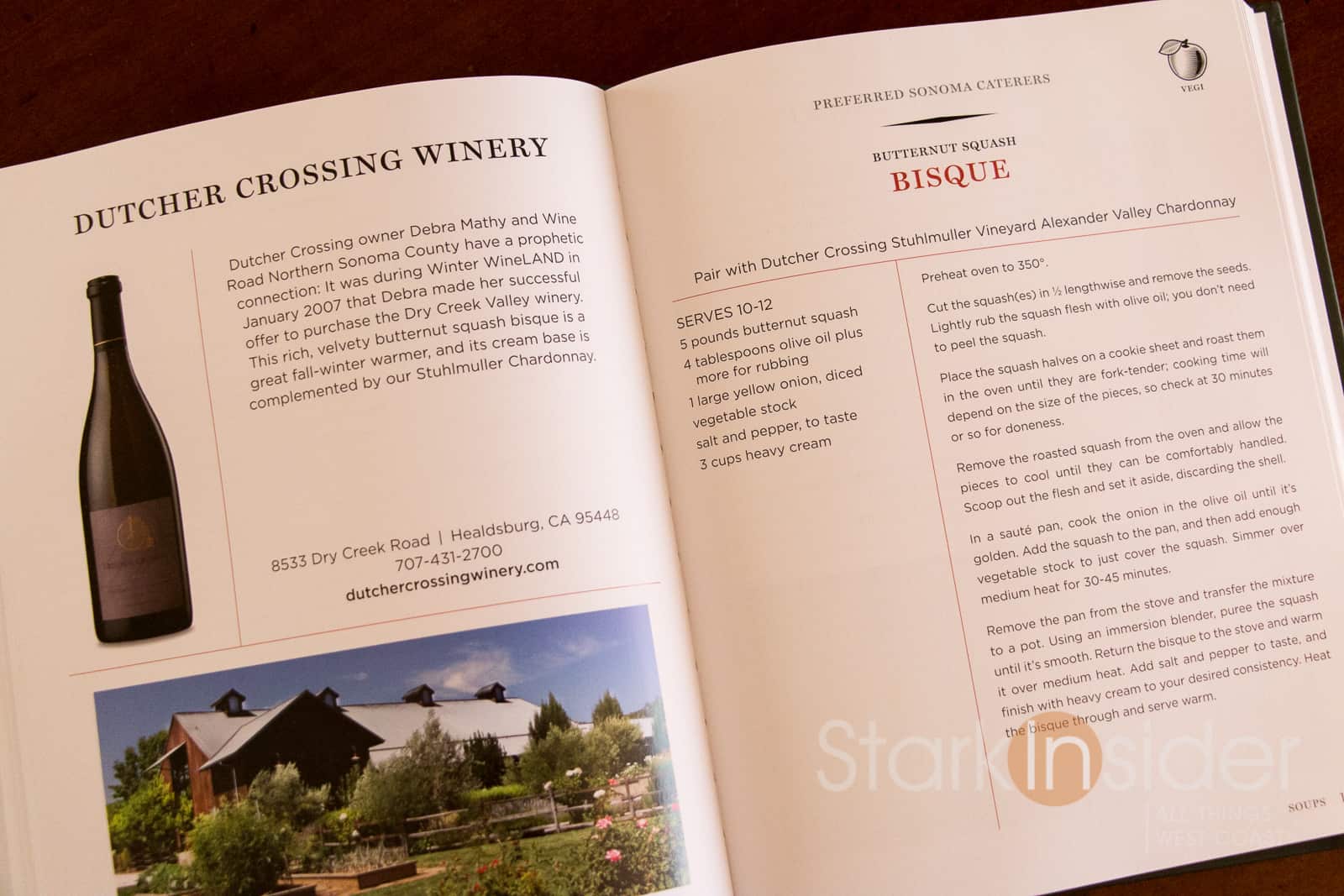 Surprise, it’s actually not a road (though Northern Sonoma does have them!). In fact, the Wine Road is a 30-year old association consisting of 180 wineries and 50 lodgings throughout the region–located just an hour north of San Francisco. As you might’ve guessed they’re almost all represented in this cookbook. If you do attend the event itself, “A Wine & Food Affair,” (Nov. 2-3) you’ll not only receive a copy, but also be able to sample all of the recipes that the participating wineries will be serving up.