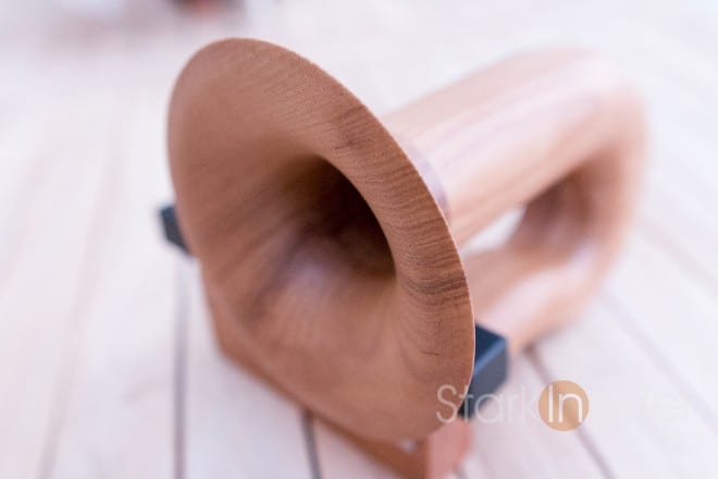 If you’re an audiophile you’ll already know what you’re getting here. This is not the speaker you bring to your friend’s Independence Day pool party. Nor will you use it to enlighten a roomful of revelers with Robin Thicke’s Blurred Lines. Rather, this is clearly designed for those who enjoy the intricacies of a string section, or the lush layers of Mahler’s Symphony No. 9 in D Major. Chamber music too would be a good match. Keep in mind that the iPhone itself is still, of course, an electronic device, so while the horn may be wood the sound is still engineered – processing and compression technologies used in iOS and the respective music streaming service. Audiophiles will no doubt be playing lossless FLAC files.