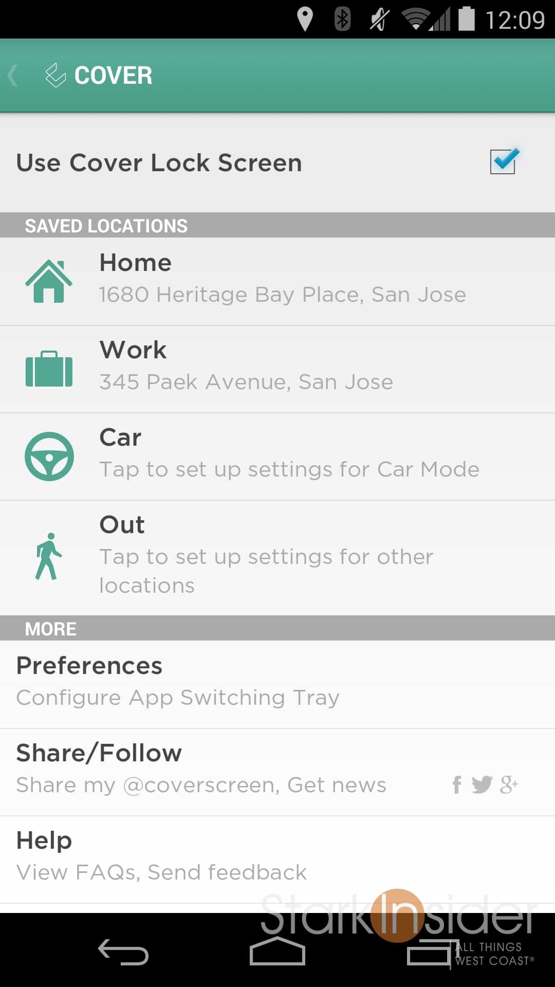 You can download Cover here – for now it’s free. The setup screens walk you through a short tutorial. And you’ll need to enter your home and work addresses (I wonder if there is way for the app to automatically pull this information from Google Now?).