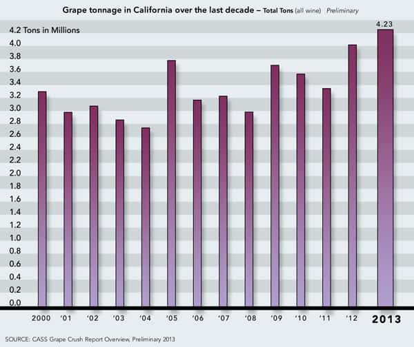 The prelim California Grape Crush Report says that 2013 crush is a humdinger. Another year, another record. An estimated 4.23 tons of grapes were crushed last harvest. That’s up 5% y/y. Interestingly PPT (Prce Per Ton) dropped slightly across all varietals. Could it be that I’ll be able to finally purchase that case of Etude? One can dream. More on the results can be found at Wine Business.