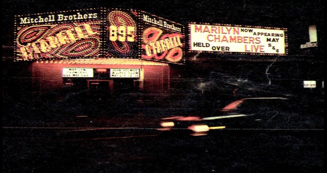 Together the Mitchell brothers created a massive porn empire based in San Francisco, and, in the process, forever transforming the industry. In 1972 the two garnered international attention with the infamous film Behind the Green Door starring Marilyn Chambers. The opening of the O’Farrell Theatre would mark their ambitious (and even more controversial) move into live performance.