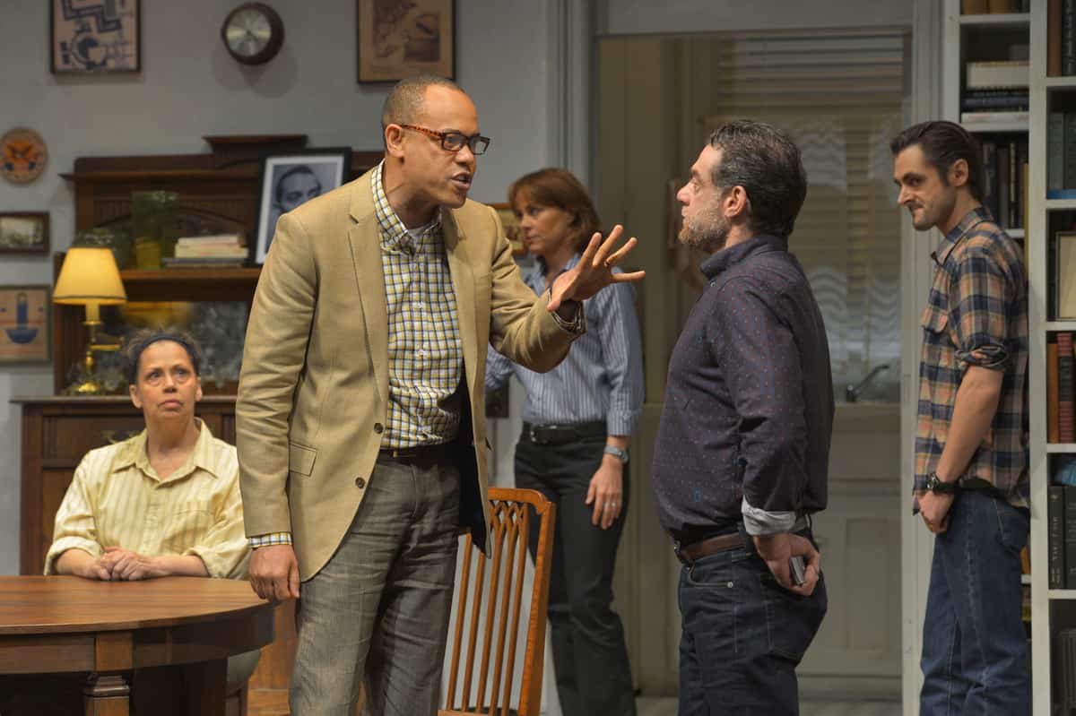 This new version is substantially changed from the earlier one, which opened at the Guthrie in 2009, and played in NY in 2010. At the heart of the first two acts are maddening conversations with such non-stop cross talk that you never really hear any through to the end. However, that’s the power that drives this play forward.
