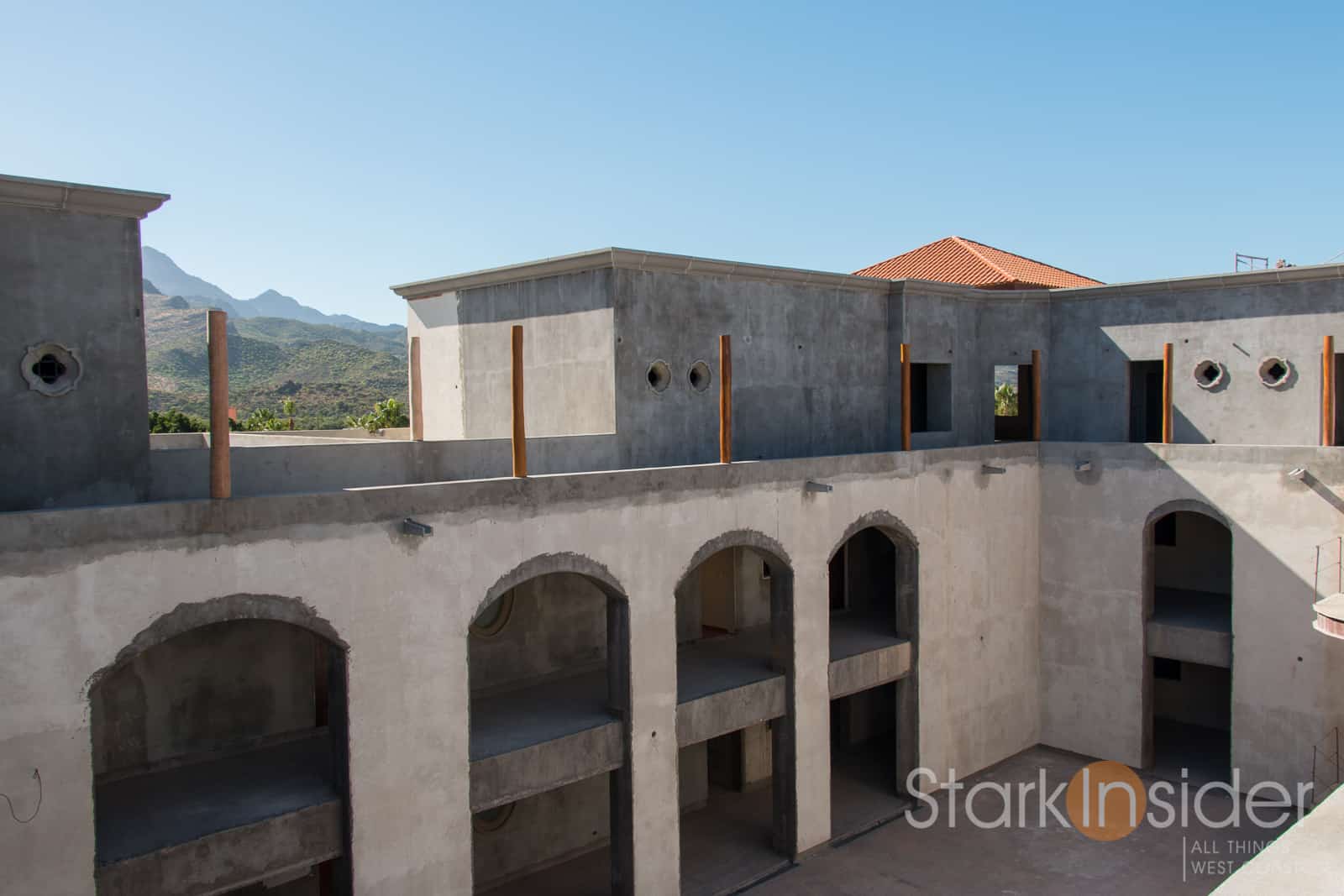 Long-time readers of Stark Insider probably already know the adventure that is home-buying here in the Baja (we purchased a little casa in 2006). We chronicled the ups-and-downs here on this site for several years and shot over 40 videos which you can watch on YouTube. We learned about “mañana”. We also learned to be patient. This was not Silicon Valley. And that was the point. Today, Loreto Bay is very close to the original developer’s vision of walkable villages — meandering tree-lined pathways, nearby cafes and family-run shops, community meeting spots sprinkled throughout. There is still rebar to be seen, and many unfinished homes, especially in the northern part of Loreto Bay, known as the “Aqua Viva” neighborhood. And those two condo buildings, though painted as best as possible to conceal an empty shell, have been eyesores for as long as I can remember…