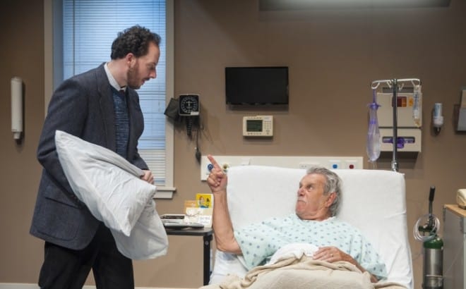 Opening you up that way is critical because the opening dialogue has to feel incredibly abrasive, for playwright Nicky Silvers’ script to work its magic. It doesn’t take 10 seconds to realize these people are a mess. In what artistic director Tom Ross calls “the template of the dysfunctional family-gathered-around-the-dying parent play,” the work opens with wife Rita (Ellen Ratner) at the bedside of husband Ben (Will Marchetti). Ratner’s nasal Long Island accent is not so offensive that you write her off completely, but she does intentionally play that one dangerously close. Above all, you wonder Who are these two to each other? Is this really the time to be arguing about redoing the living room? You never question why your attention is fixed like a laser on these really disagreeable people.
