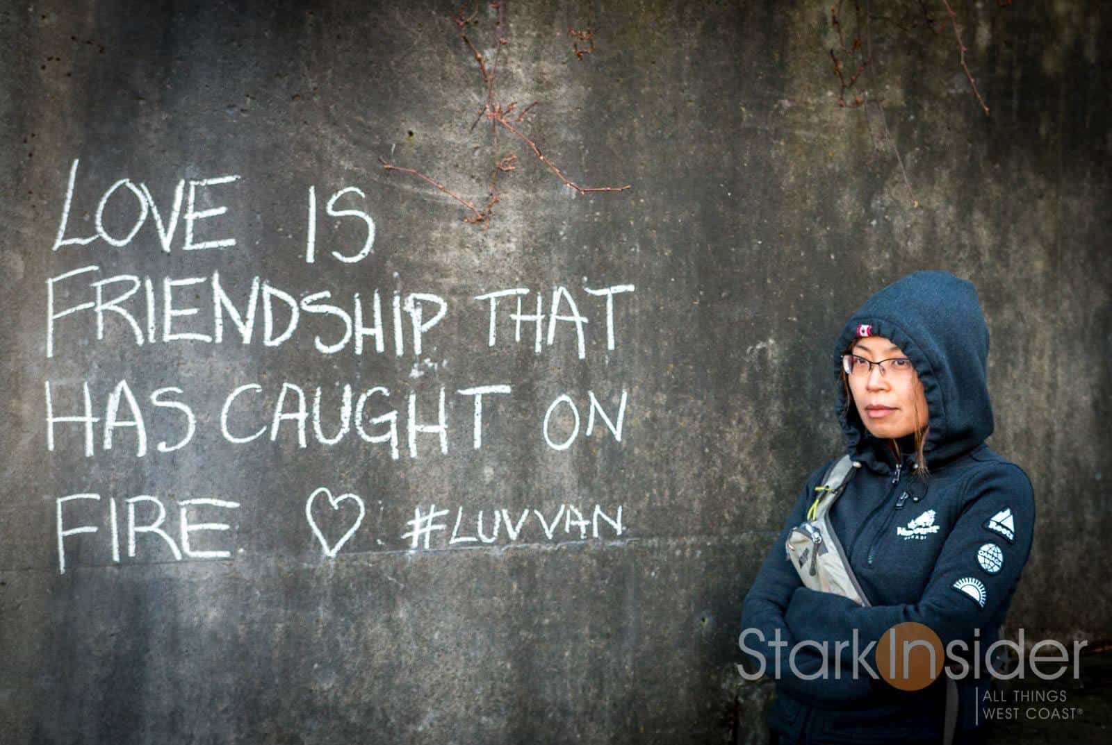 We were up to Vancouver for a Valentine’s getaway. We didn’t plan to shoot any Stark Insider videos. Instead, we would enjoy a few nights of sushi (and boy does this city deliver the goods when it comes to quality sushi!), shop a little, and walk a lot. Vancouver is highly walkable. You can stroll the different neighborhoods–Yaletown, Gastown, Coal Harbor, Chinatown, downtown–with ease. Especially scenic is the Seawall and Stanley Park. There we encountered a wonderfully whimsical, public art exhibit “A-maze-ing Laughter”: